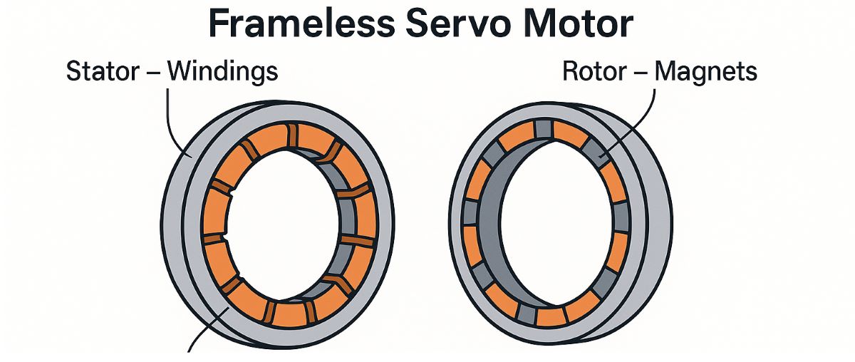 Frameless servo motors are a special type of electric motor used in applications requiring industrial automation, robotics, and rapid motion control. Frameless motors consist of only rotor and stator components, without an outer casing or housing. This design allows the motors to be lighter, more compact, and more flexible. As a result, frameless servo motors are ideal for systems requiring high precision and speed.